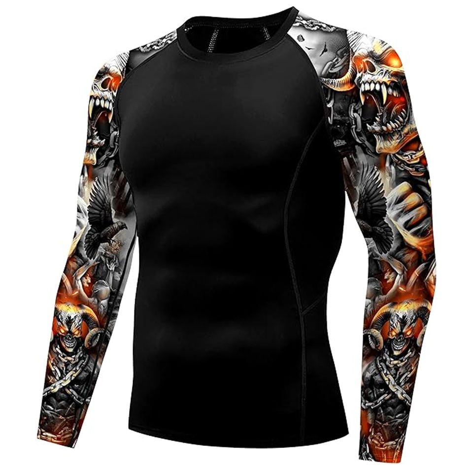 T-shirt de compression athlétique à manches longues pour homme, imprimé graphique, protection UV, séchage rapide, OEM en gros
