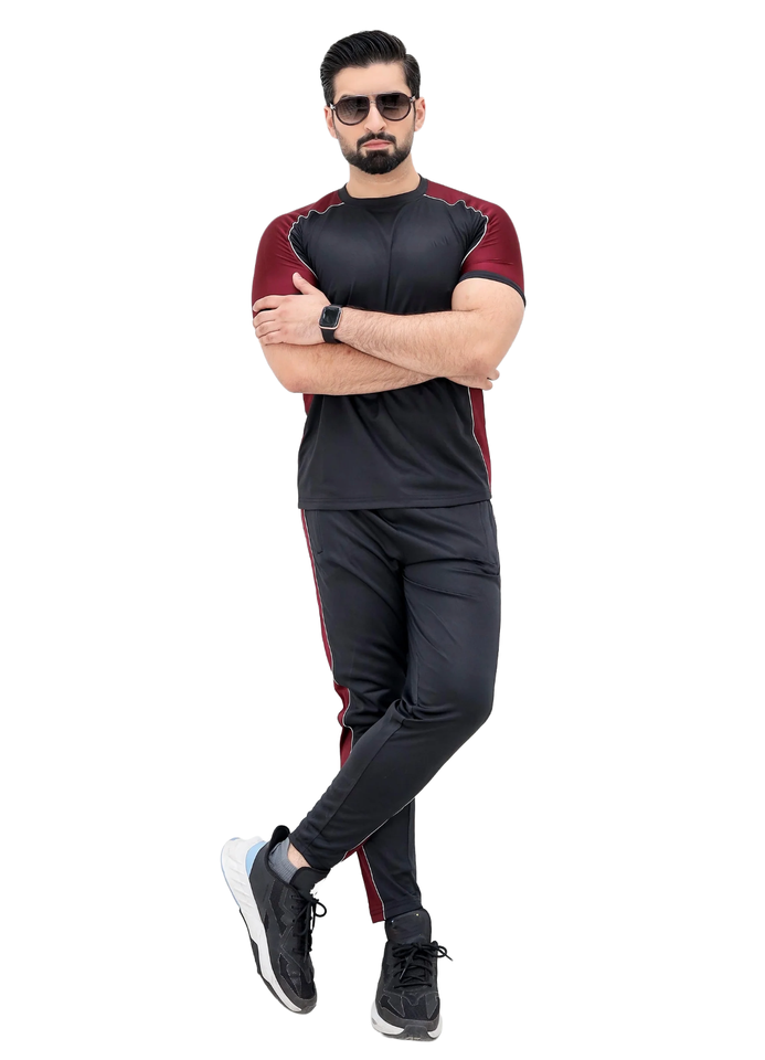 Men Athletic Tracksuit Set Short Sleeve T-Shirt and Jogger Pants Sportswear Gym Fitness Running Training Activewear Outfit