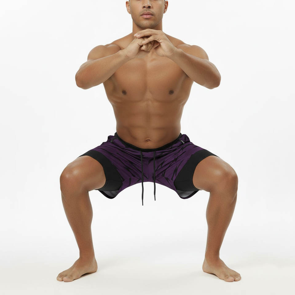 Shorts de sport pour hommes, doublés, séchage rapide, poches zippées, shorts de course, shorts de fitness, shorts de randonnée, shorts de course 2 en 1