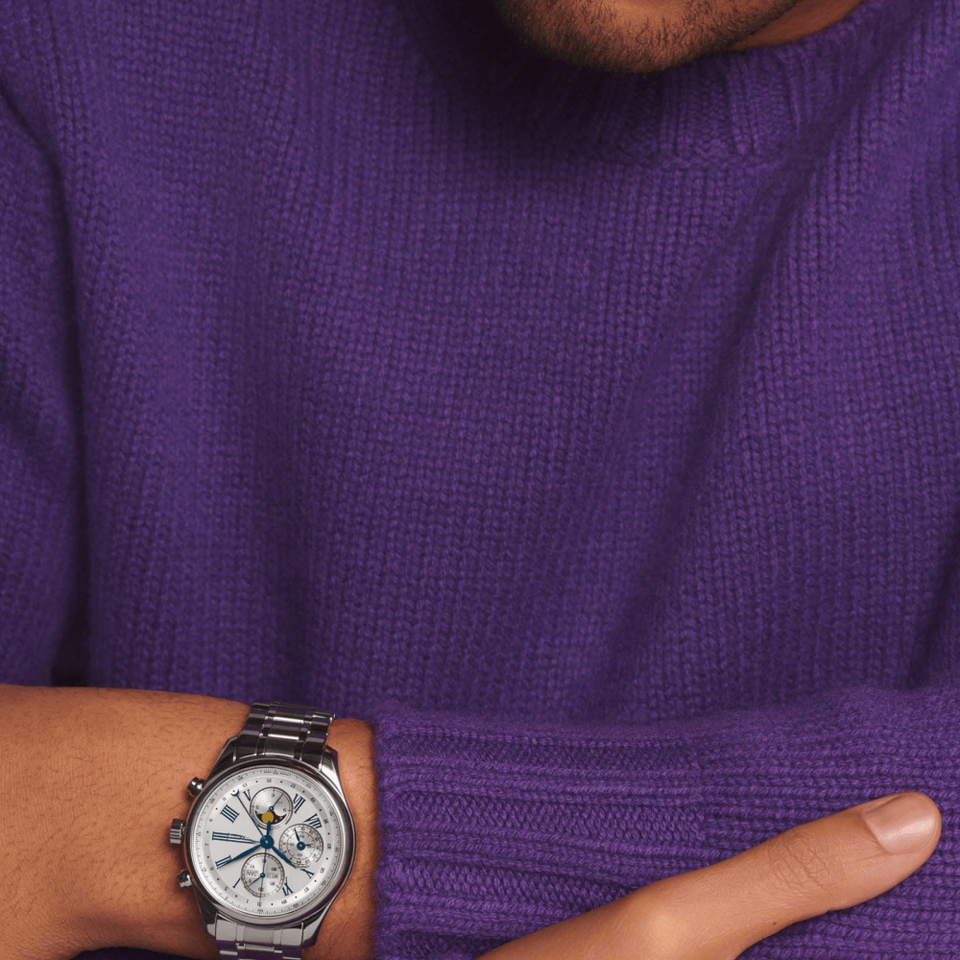 Montre chronographe automatique pour homme, phase de lune, chiffres romains, bracelet en acier inoxydable, verre saphir, montre-bracelet Longinesing