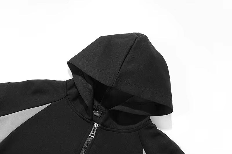 Ensemble de survêtement sport deux pièces pour homme, nouvelle collection hiver, en molleton tricoté, à capuche, avec empiècements contrastants, coupe décontractée, 100% molleton.