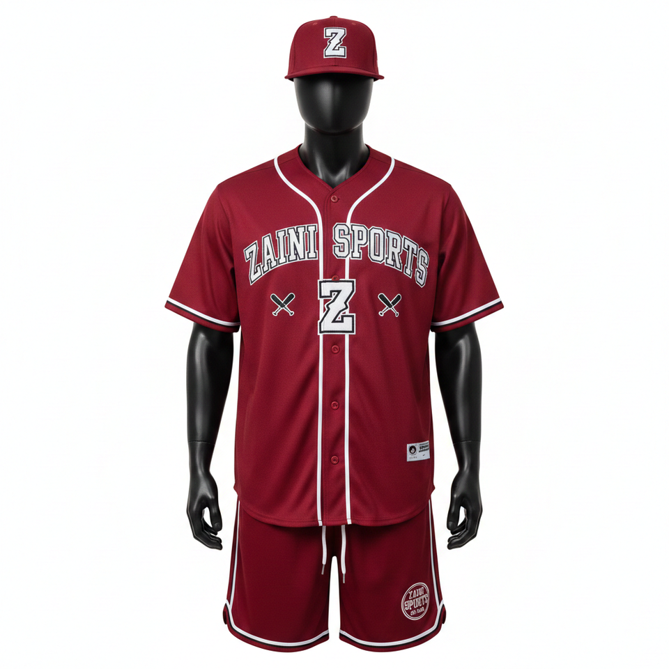 Ensemble short de baseball pour homme en tissu polyester léger, avec panneaux contrastants marron et logo personnalisé en twill.