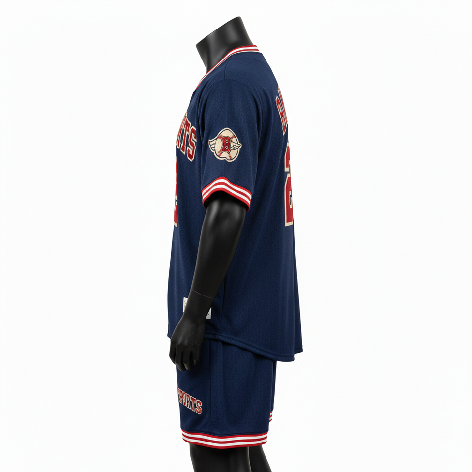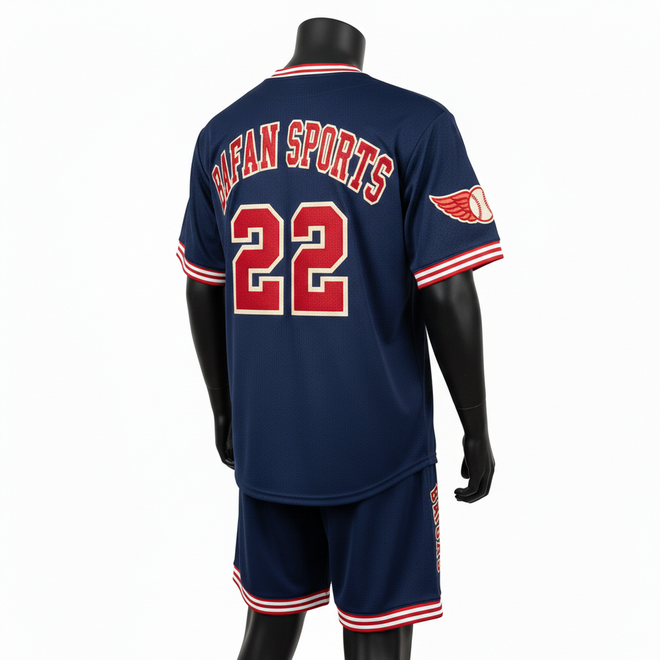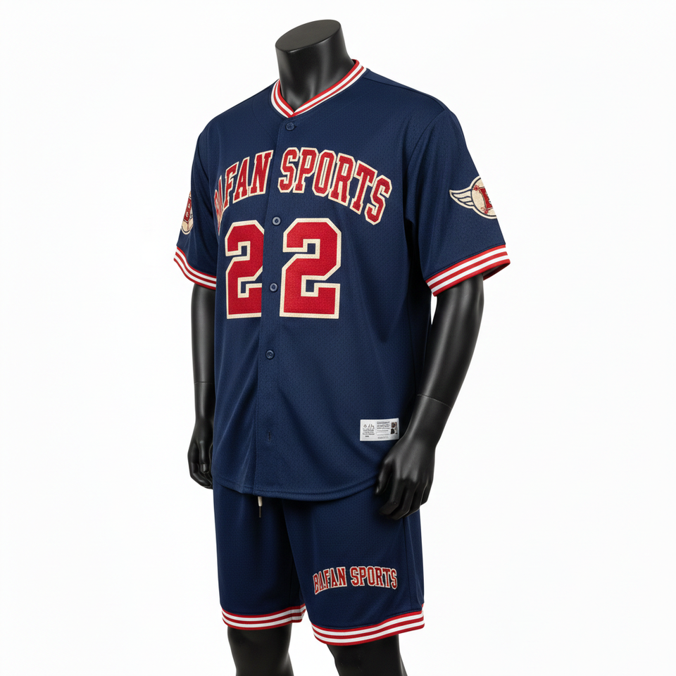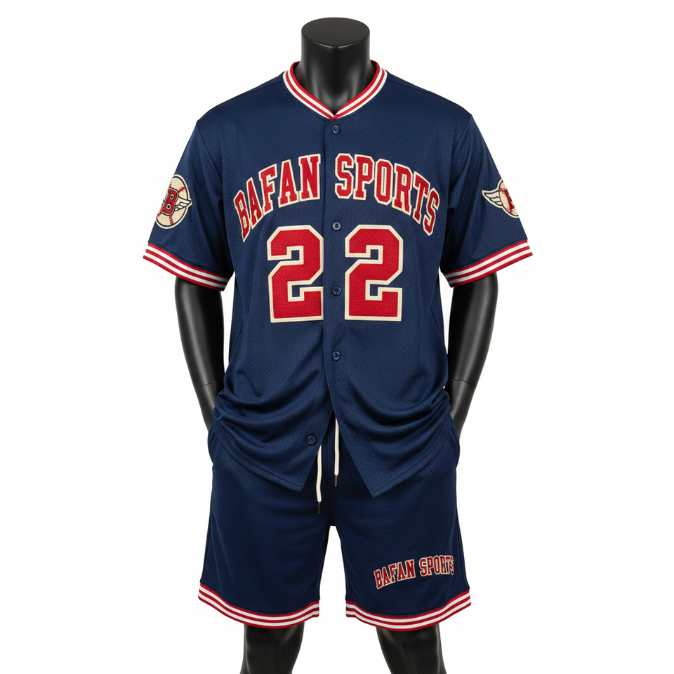 Ensemble de shorts de baseball pour hommes en tissu mesh polyester premium 180 GSM, bleu marine, coupe athlétique, logo personnalisé appliqué pour ensemble de shorts homme