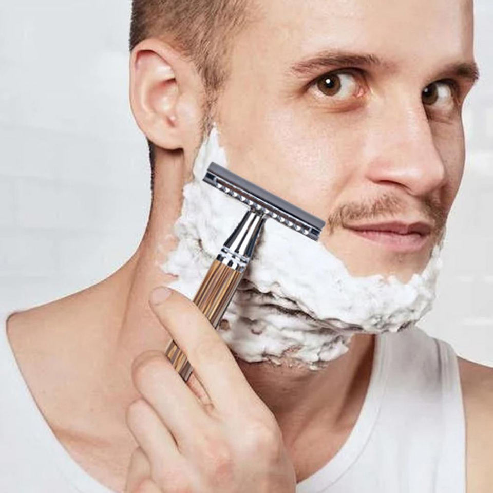 Rasoirs à barbe manuels pour hommes, manche ergonomique léger, réutilisable, manche en bambou, rasoirs à double tranchant pour hommes, machine à raser