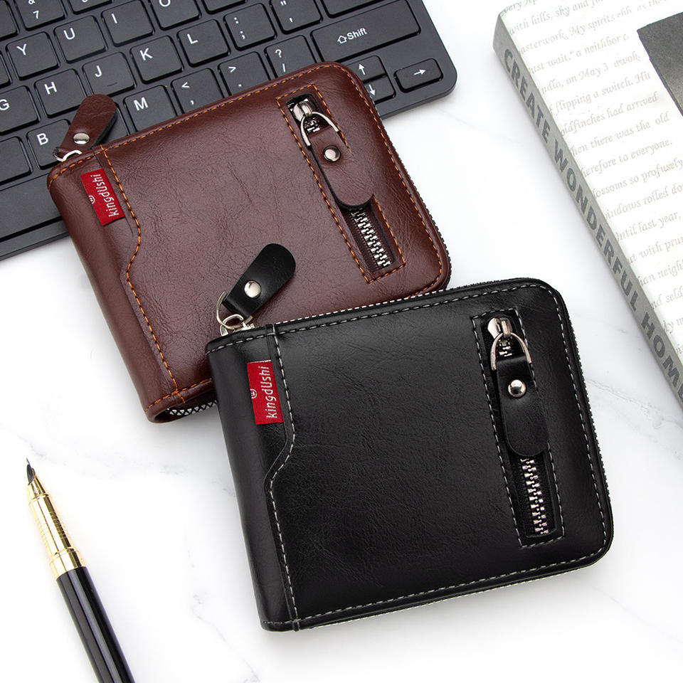 Portefeuille pour homme Bense, vente en gros, logo personnalisé, court, portable, de haute qualité, en cuir PU, avec doublure en polyester