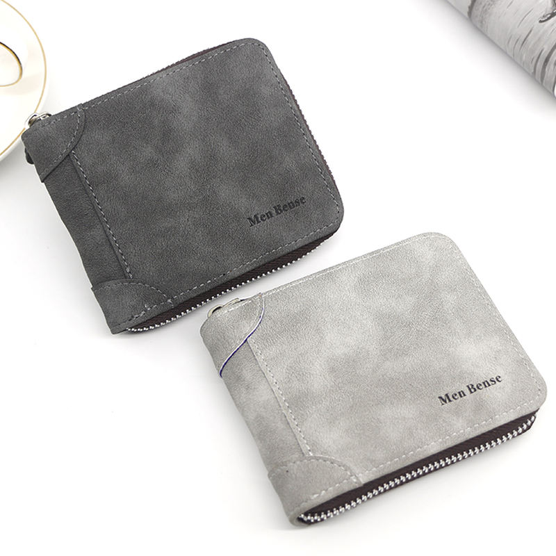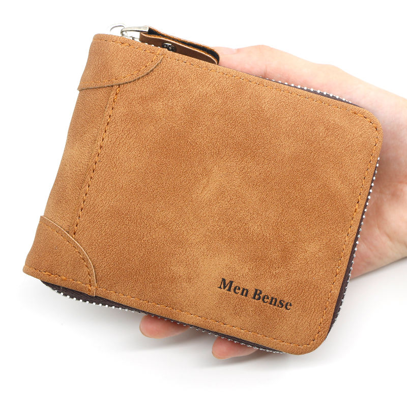 Men Bense Wholesale Custom Logo Short Portable High Quality PU Leather Cover Closure Card Holder Wallet with Polyester Lining