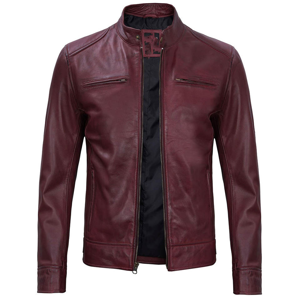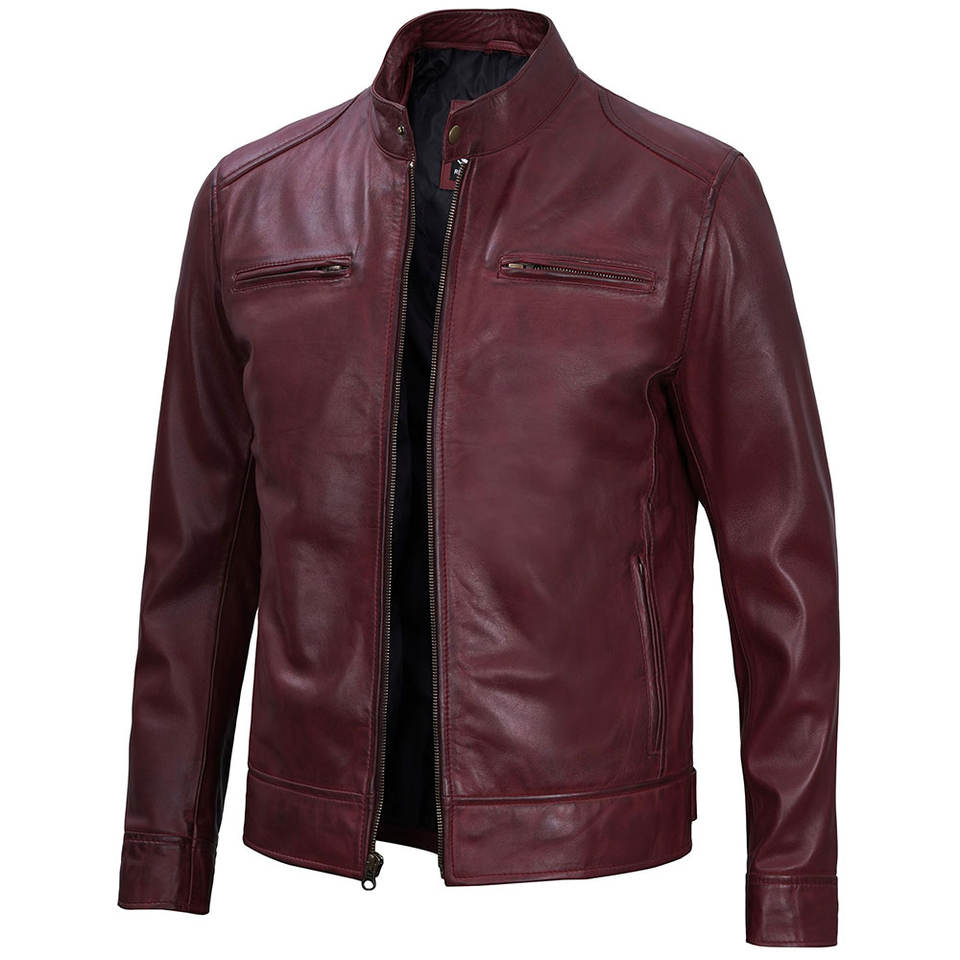 Blouson en cuir pour homme, style motard, hiver, à capuche, antibactérien, écologique, décontracté, style racing, OEM