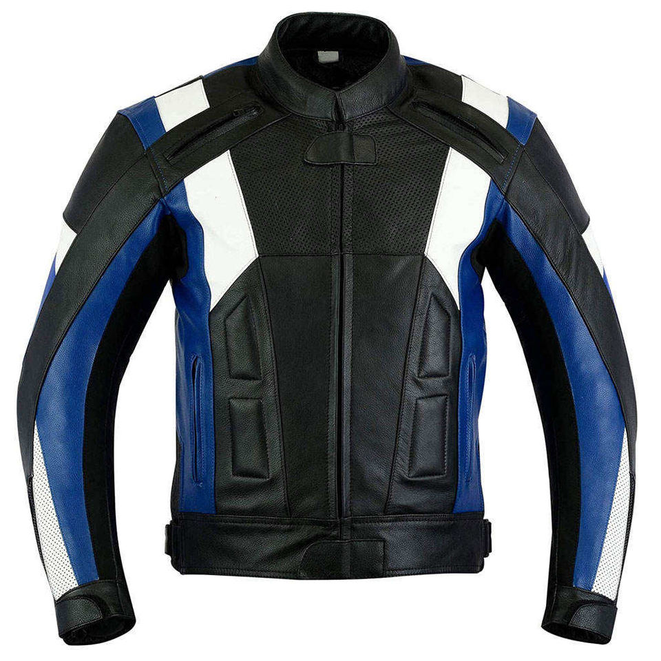 Veste en cuir de moto pour homme, noire, bleue et blanche, veste de protection pour motard, veste de moto