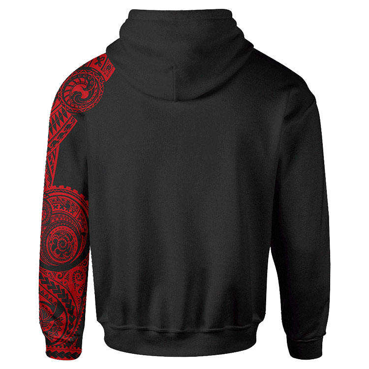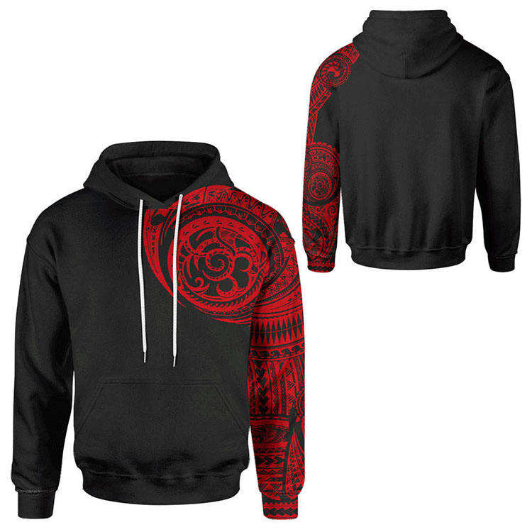 Men Black Hoodie Red Tribal Print Pullover Casual Streetwear Long Sleeve Warm Fleece Hooded Sweatshirt Trendy Graphic Fashion