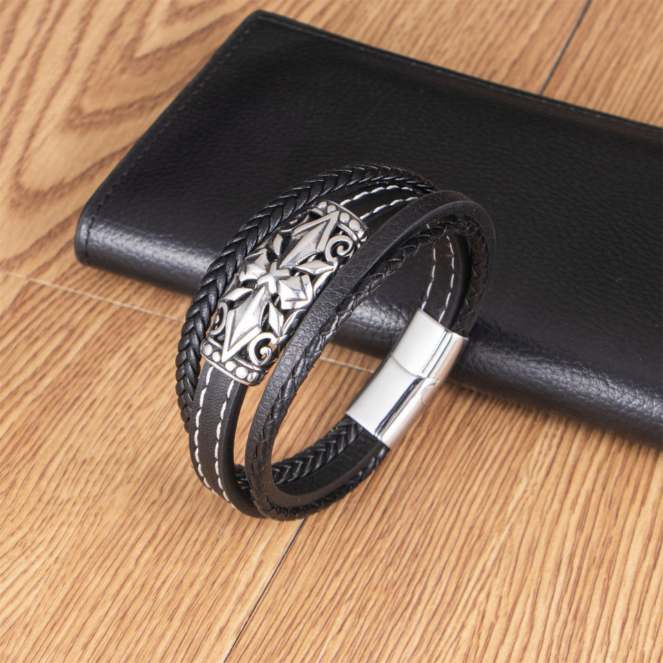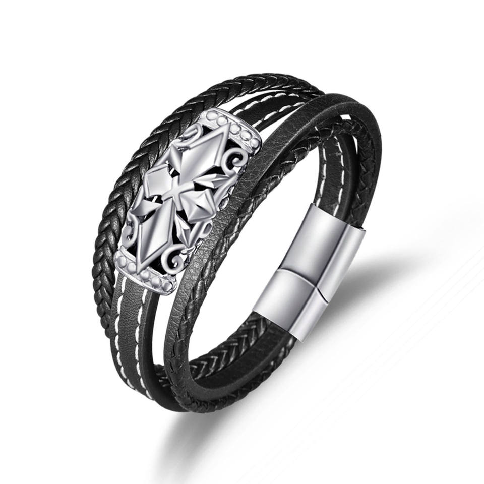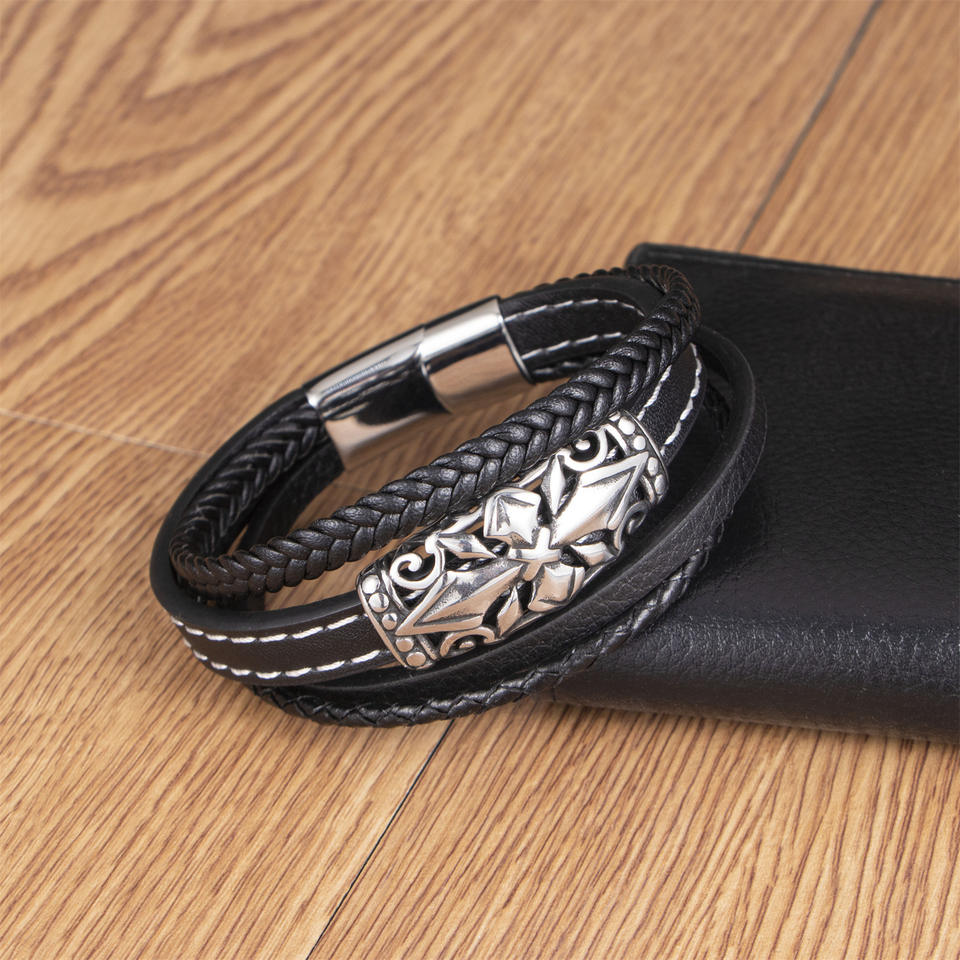 Nom du produit:Mens Bracelets en cuir et acier inoxydable