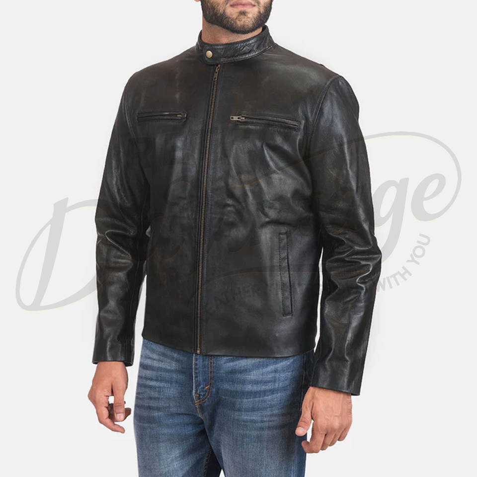 Blouson de motard en cuir noir pour homme, en peau de mouton véritable de qualité supérieure, coupe ajustée, col montant, fermeture éclair, style décontracté, veste de moto