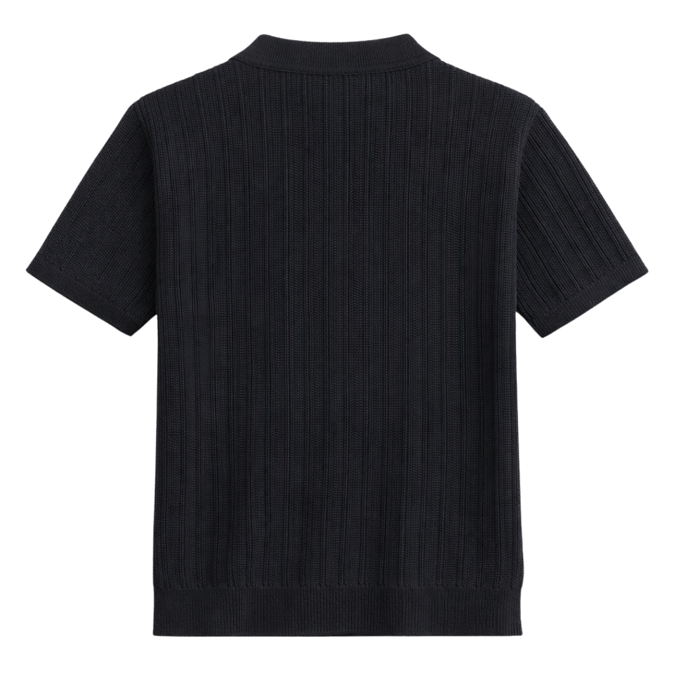 Polo homme noir en maille côtelée verticale, manches courtes, 100 % coton, coupe ajustée, respirant, décontracté, idéal pour l'été, pour la mode OEM et la vente en gros