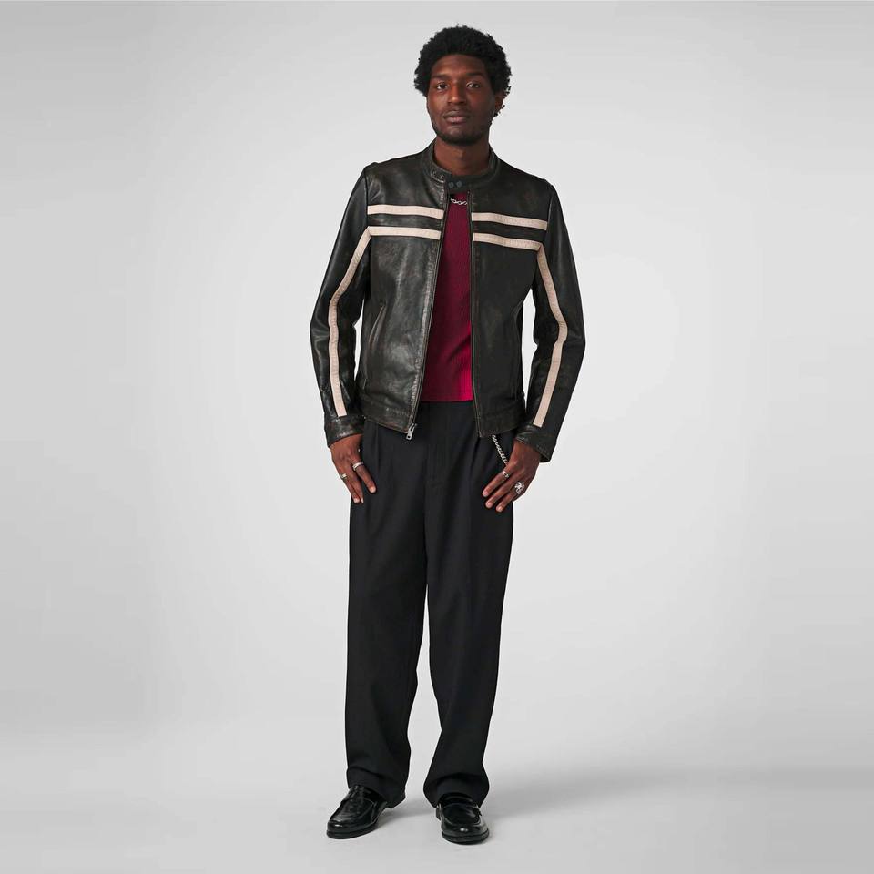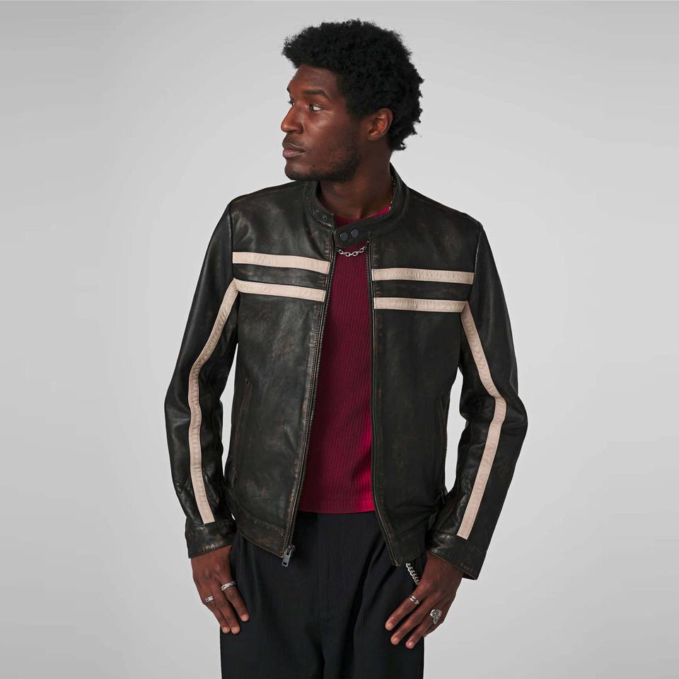 Veste de course vintage noire pour homme à rayures blanches-Style moto rétro classique pour tous les jours