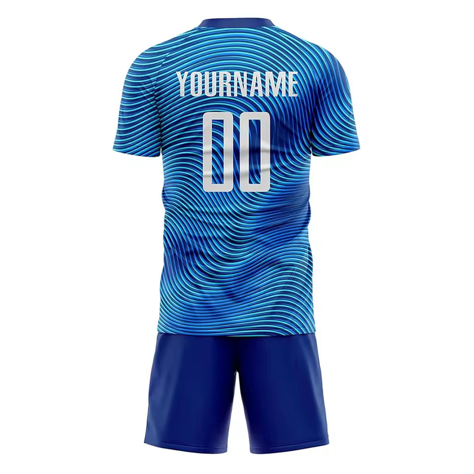 Men Blue Color Printed Sublimated Soccer Jersey Set Men Youth Quick Dry Customized Soccer Uniforms In Cheap Price