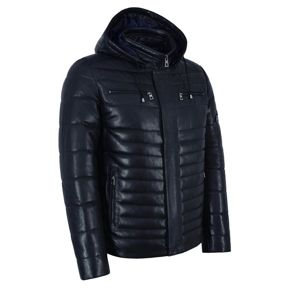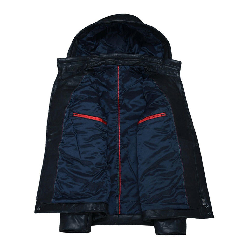 Veste en cuir bleu pour homme, nouveau style de veste en cuir oversize avec veste en cuir à capuche amovible