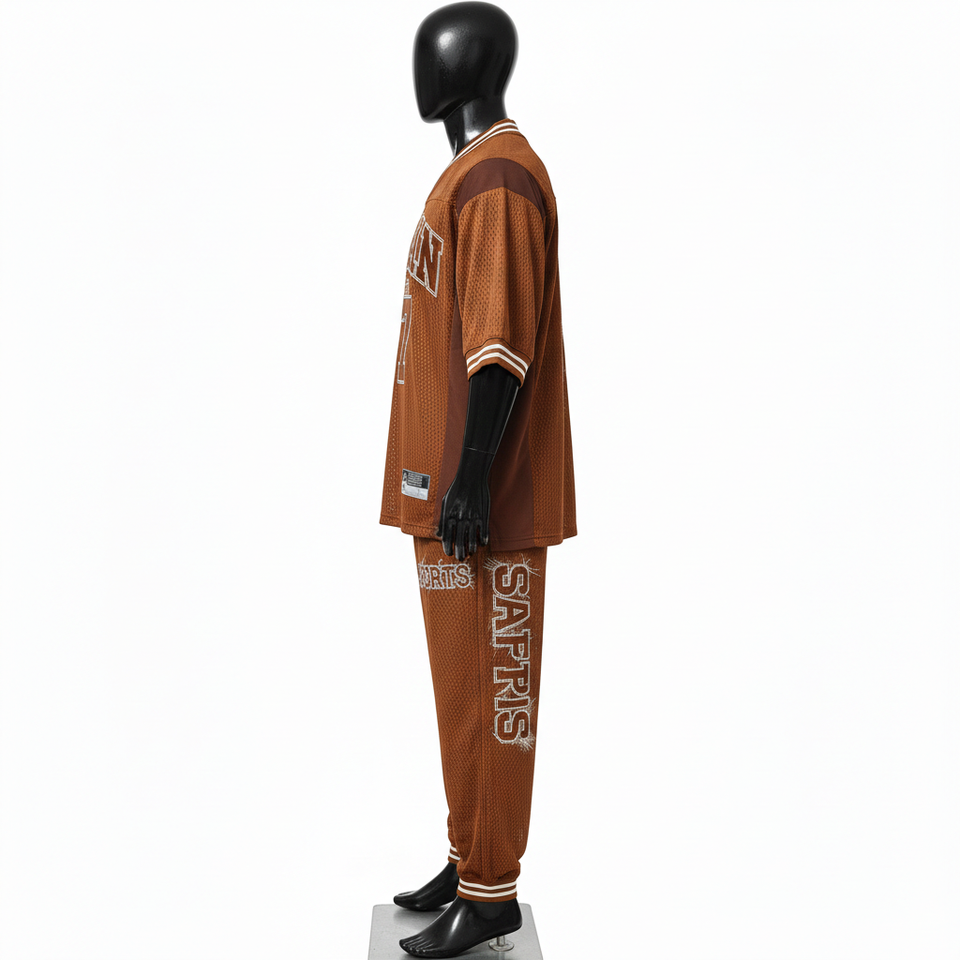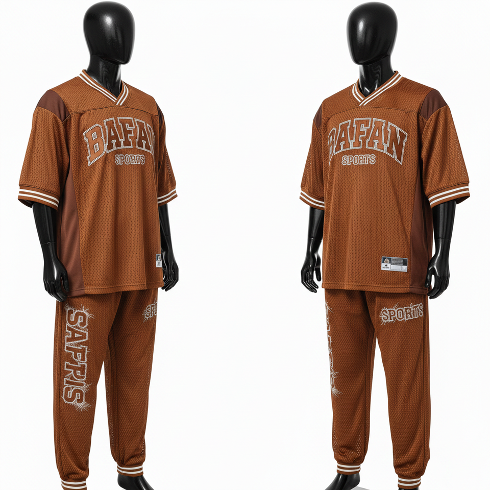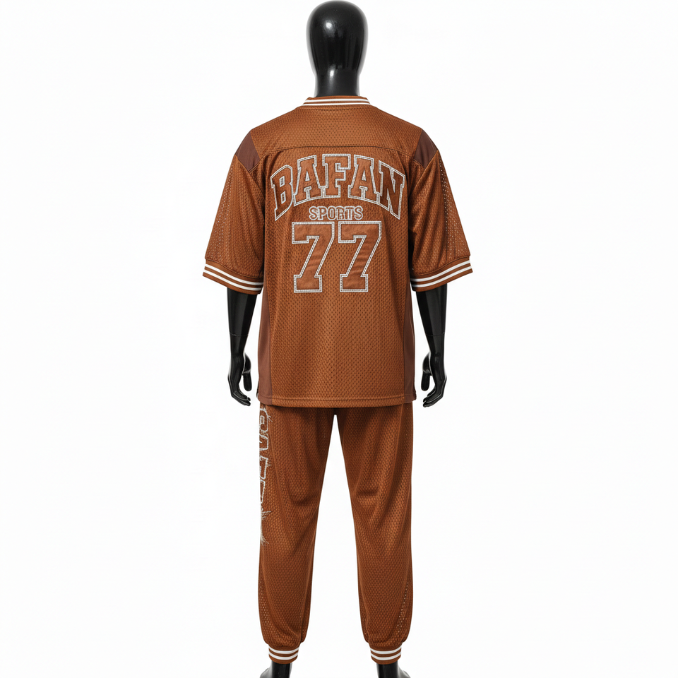 Ensemble de pantalon et maillot en mesh polyester respirant pour homme, 180 GSM, vêtements de sport, panneau contrastant marron, logo brodé personnalisé, ensemble 2 pièces pour homme