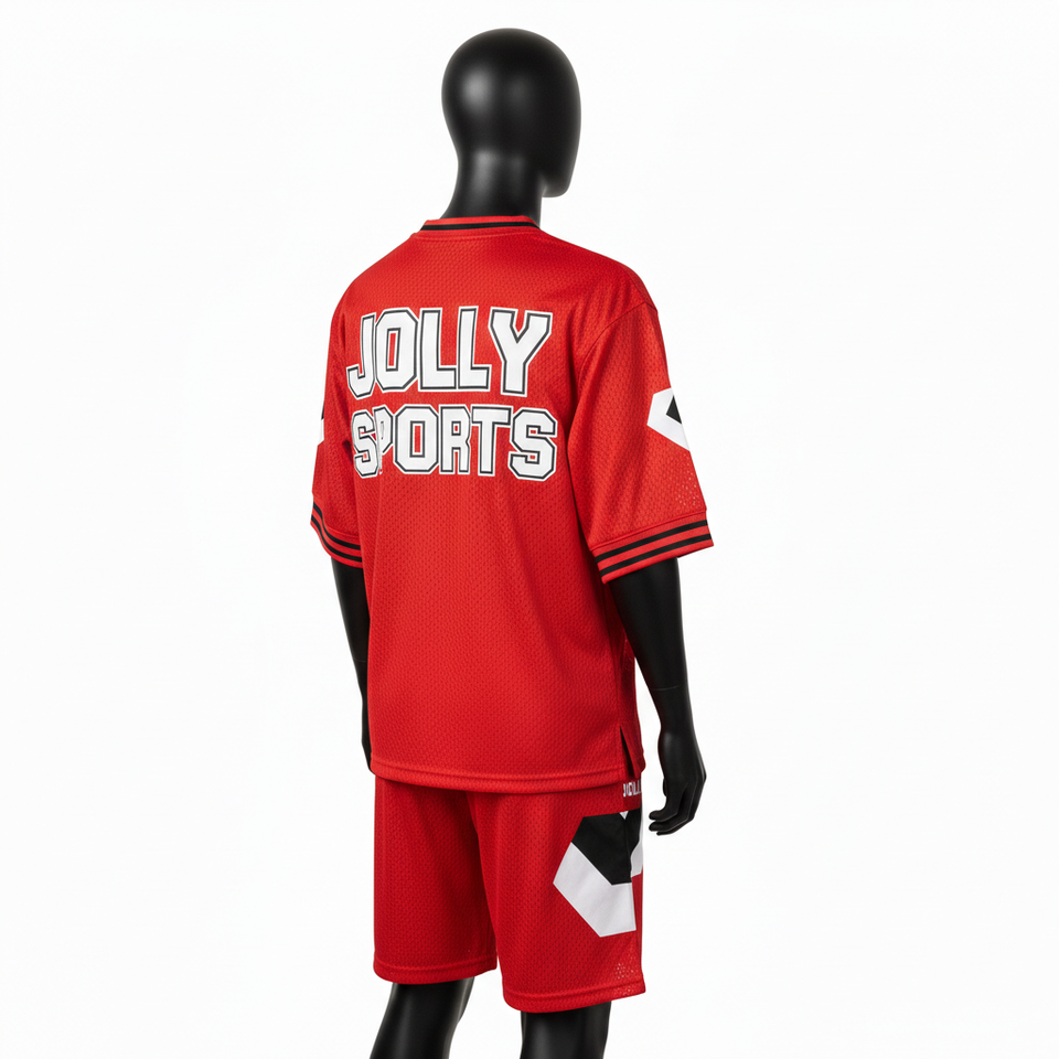 Ensemble de shorts en jersey de polyester respirant pour hommes, léger, rouge, vêtements de sport avec logo personnalisé par transfert thermique, ensemble de shorts pour hommes