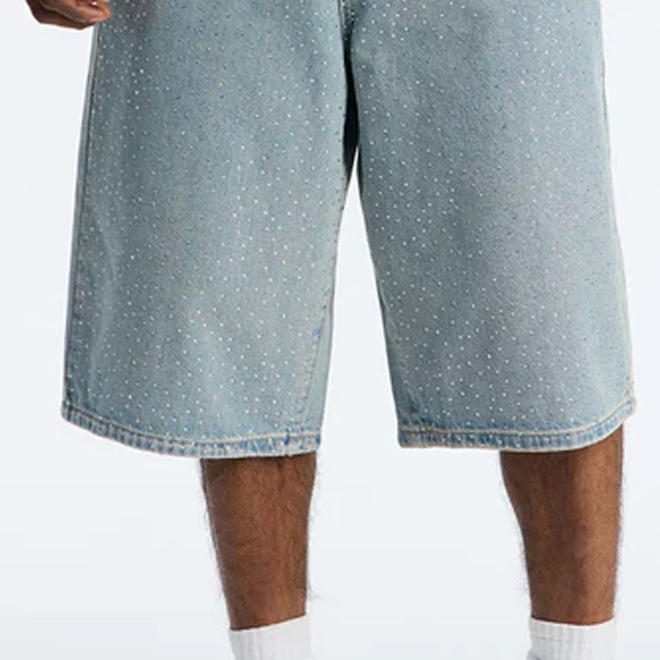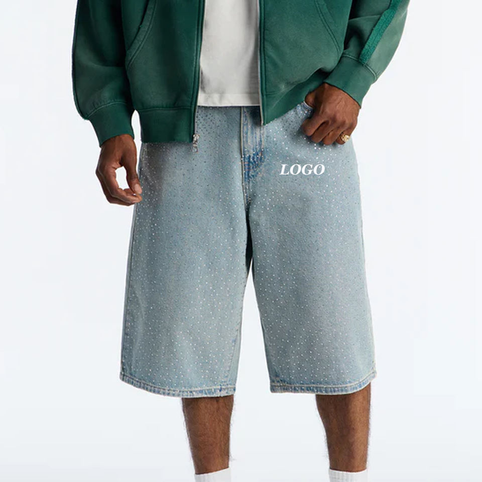 Short en jean décontracté pour homme, coupe ample, bleu clair délavé, style uni, coupe ample confortable, prix d'usine, coupe ample, fermeture éclair, 2026