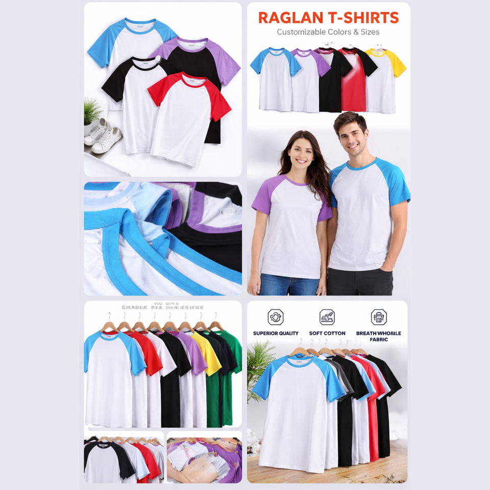 T-shirt décontracté pour homme, coupe ample, manches raglan, 220 GSM, poids lourd, 100 % coton, streetwear, logo personnalisé, couleur unie