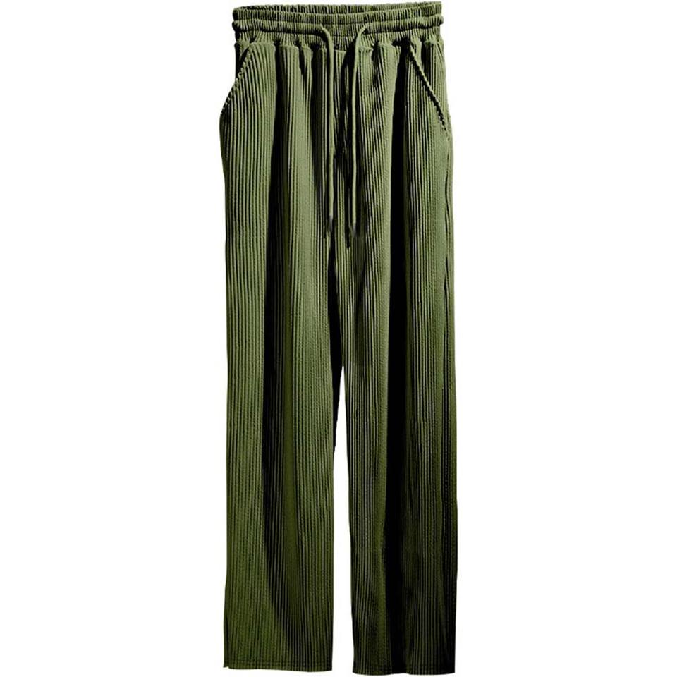 Pantalon décontracté pour homme en tricot côtelé, respirant, lourd, taille élastique, plissé devant, coupe ample, taille mi-haute, tendance