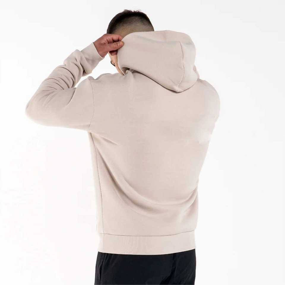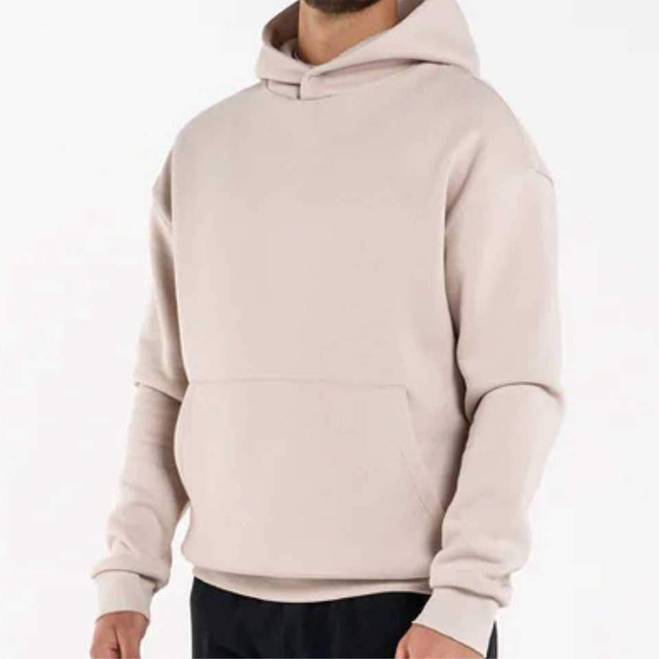 Men Cement Relaxed Fit Plain Hoodie - Comfortable Everyday Wear With Stretchable Cuffs and Snap Fastener Hood