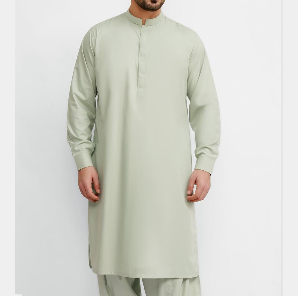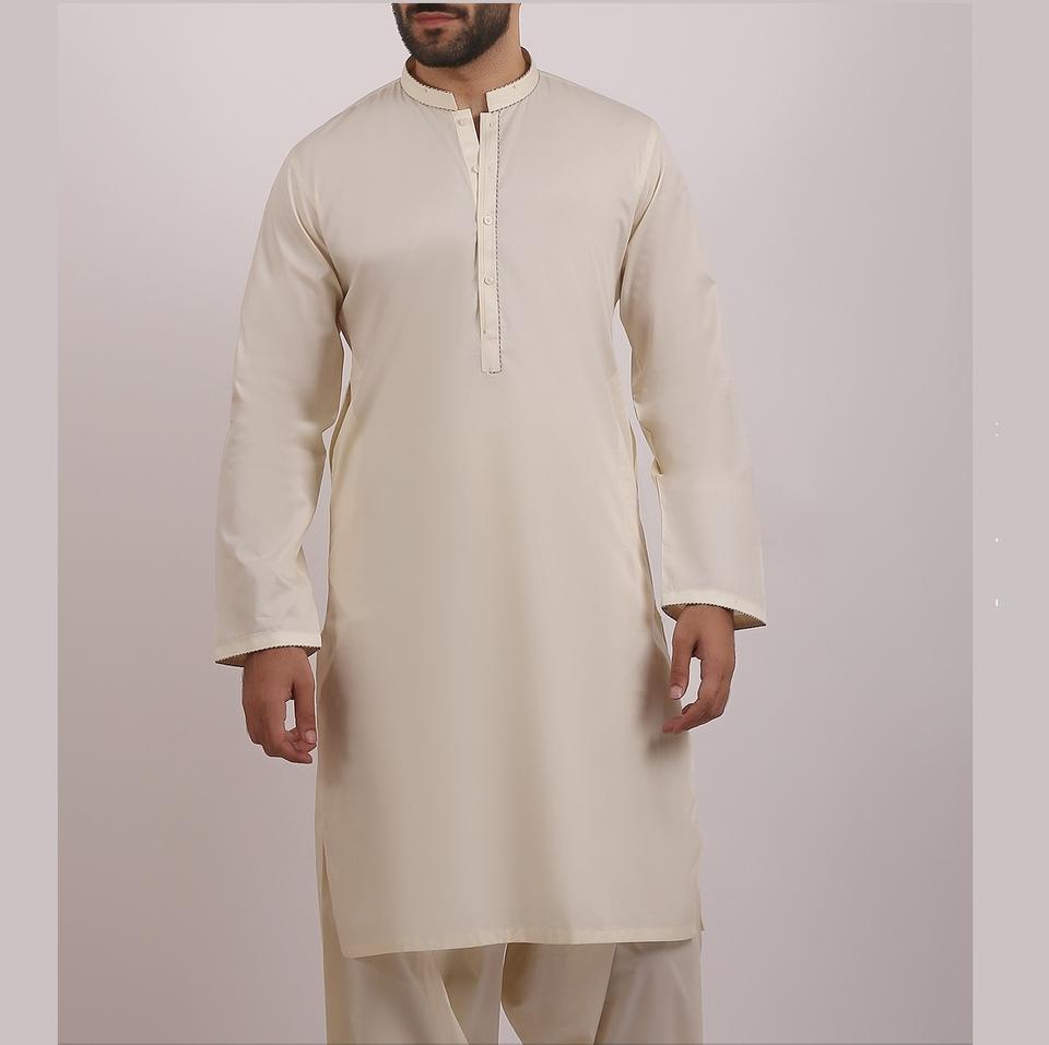 Vêtements pour homme Shalwar Kameez Pakistan Made Vêtements pour homme en polyester soyeux, coton personnalisé imprimé avec broderie, couleur bleue unie