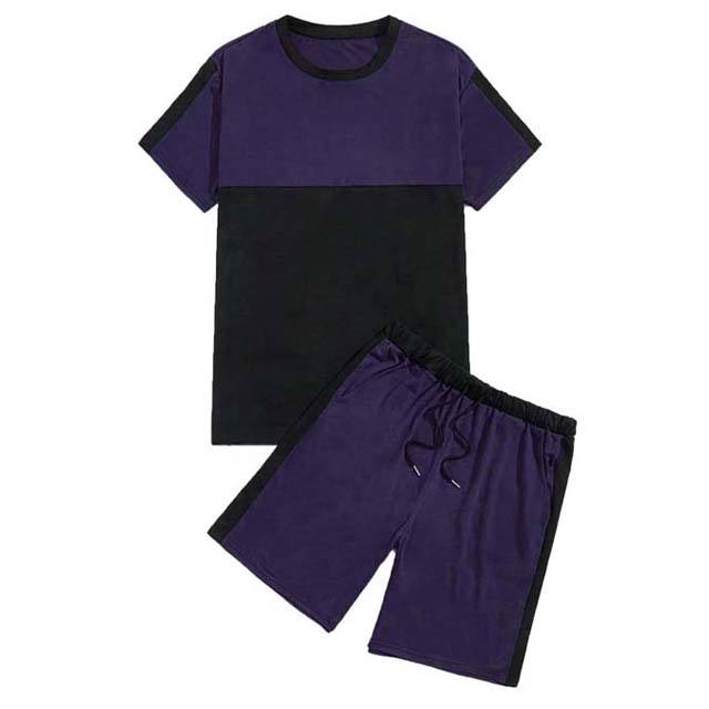 Ensemble d'été à blocs de couleurs pour hommes t-shirt et short de sport à cordon vente en gros de vêtements pour hommes personnalisés ensembles de survêtements en coton respirant