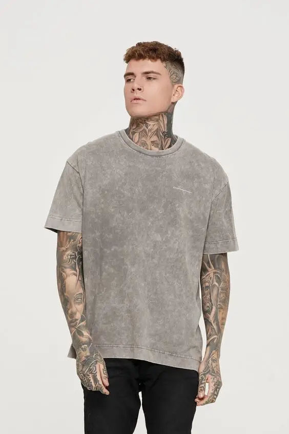 T-shirt homme color block oversize coupe carrée épaules tombantes manches courtes décontracté en coton coupe ample streetwear