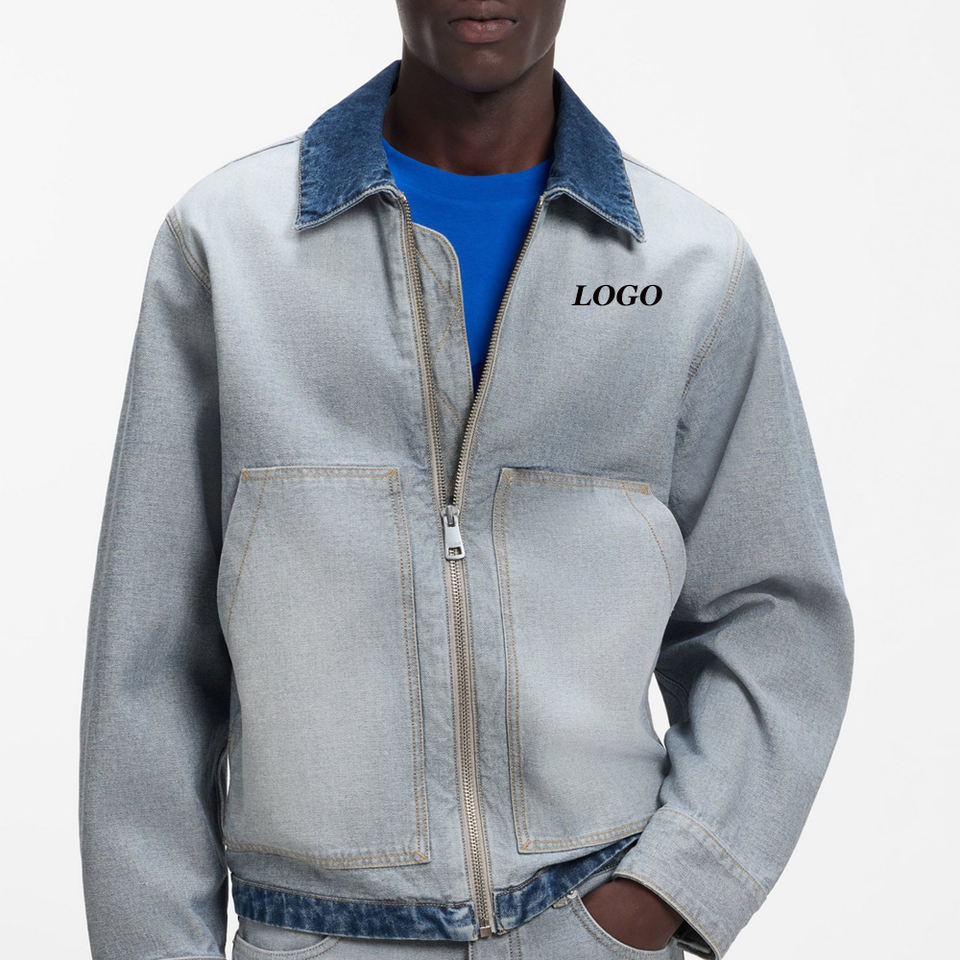 Veste en jean pour homme, design confortable et durable, pour les acheteurs en gros, design streetwear tendance, manches longues, col rabattu