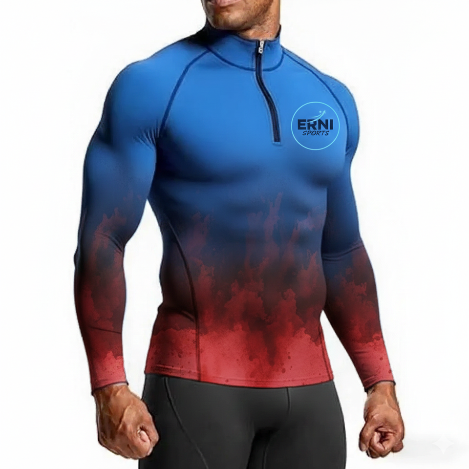 T-shirt de sport à manches longues pour homme, compression 3D tricotée, coupe ajustée, pour la salle de sport, la course à pied, l'entraînement, vêtements de sport à séchage rapide