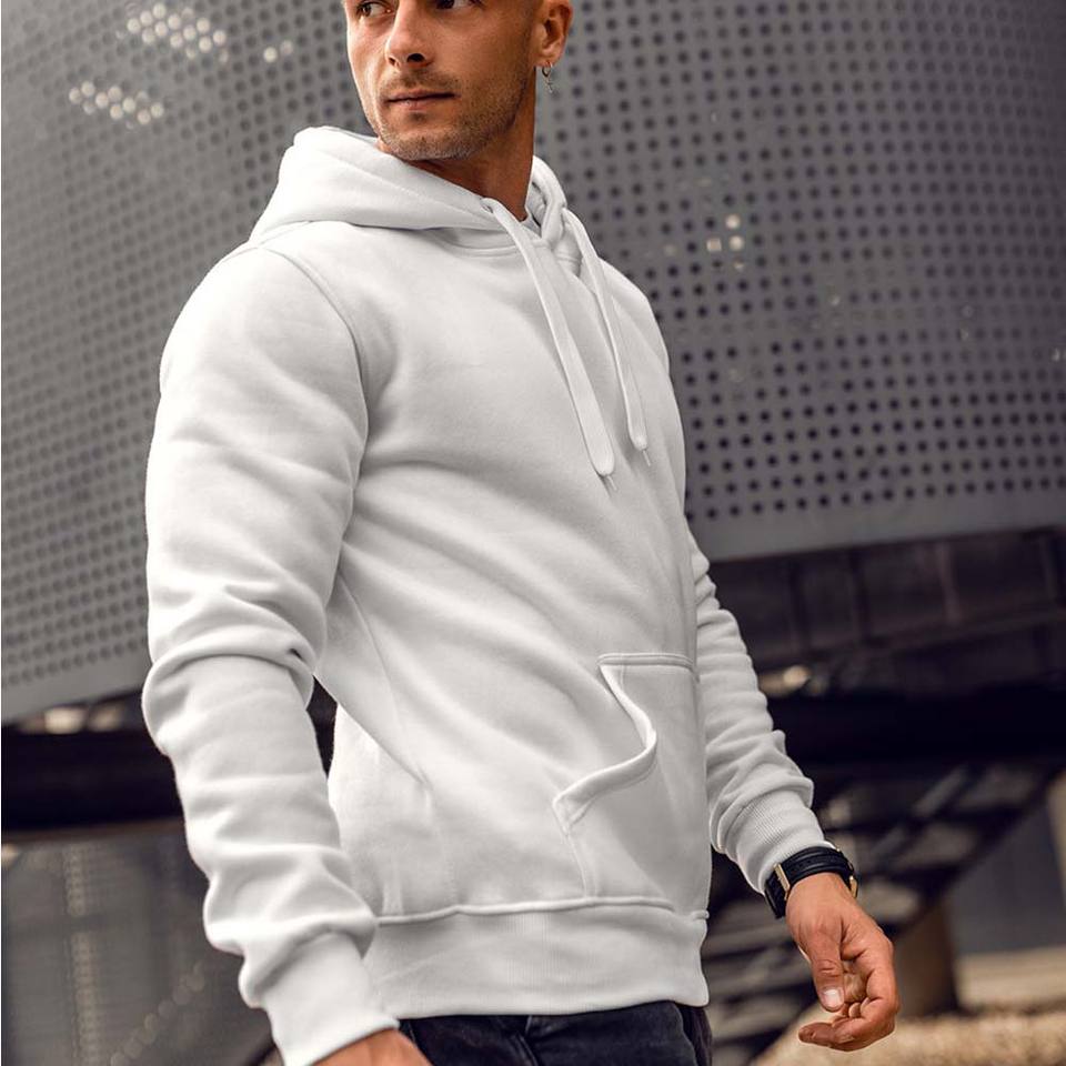 Sweat à capuche en molleton chaud décontracté pour homme en coton CVC à manches longues pour l'hiver avec poche kangourou