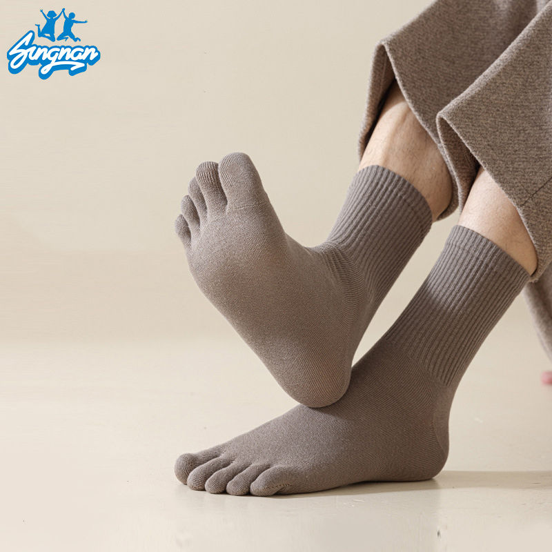 Chaussettes à cinq doigts en coton pour hommes Grip Autumn Medium Tube Knitting Pattern 5 Toe Cotton Socks Sports Anti-Odor Cotton Foot Tube Socks