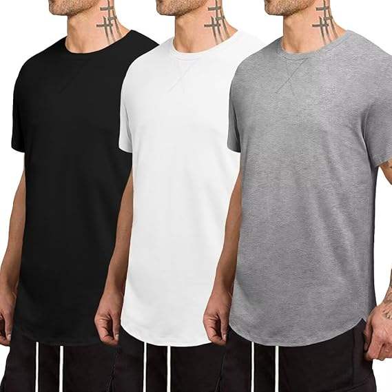 T-shirts à col rond pour hommes Multipack Short Sleeve Hipster Hip Hop Longline Classic Tee Tops