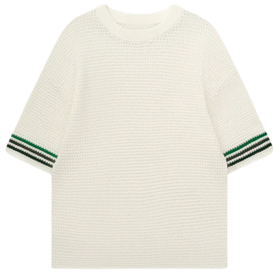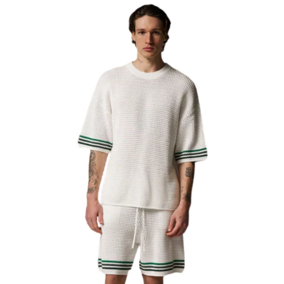 T-shirt en maille crochetée pour homme, manches courtes, respirant, en coton, style décontracté, streetwear d'été, vente en gros, OEM, usine personnalisée