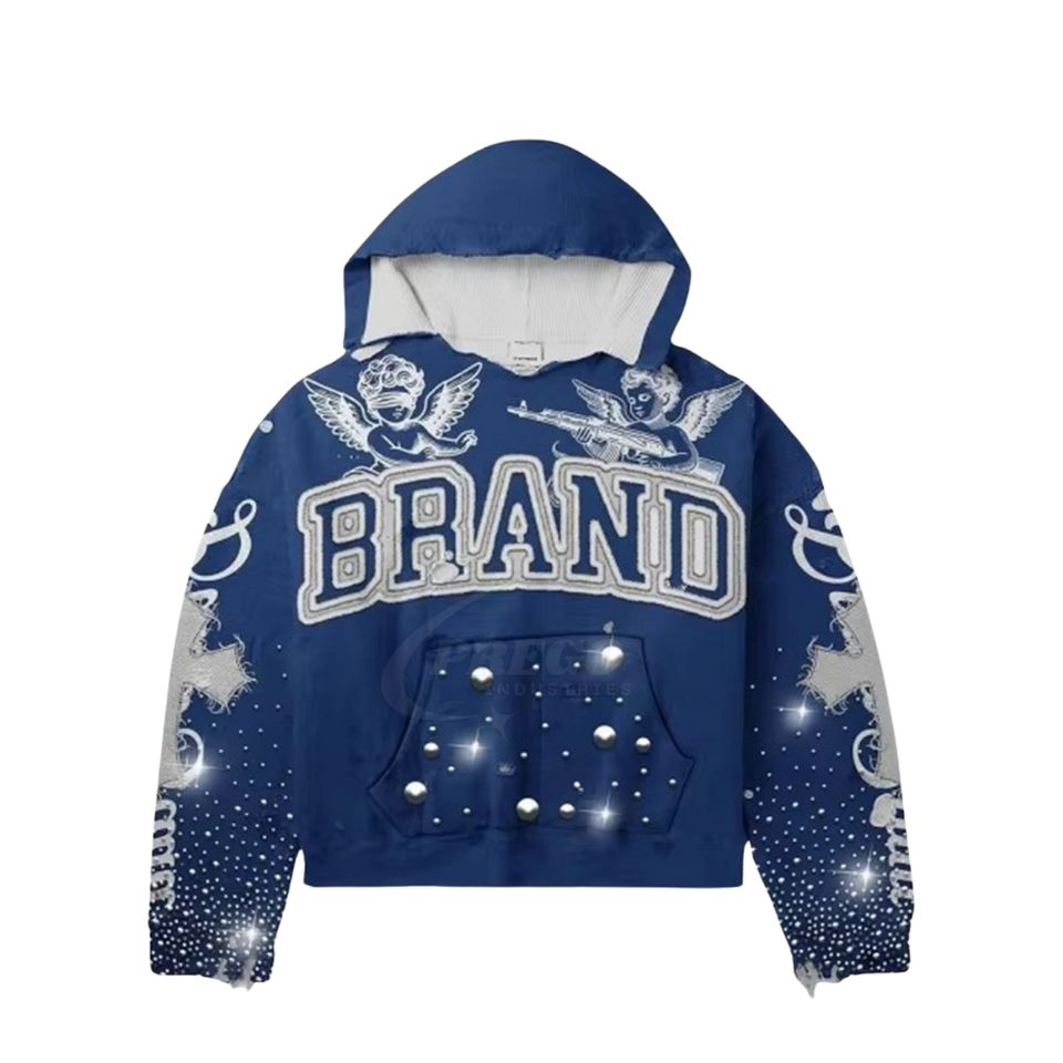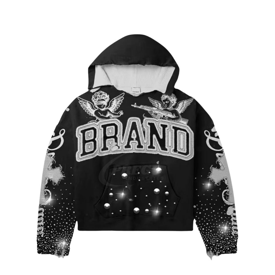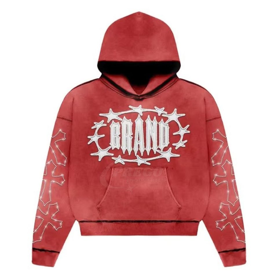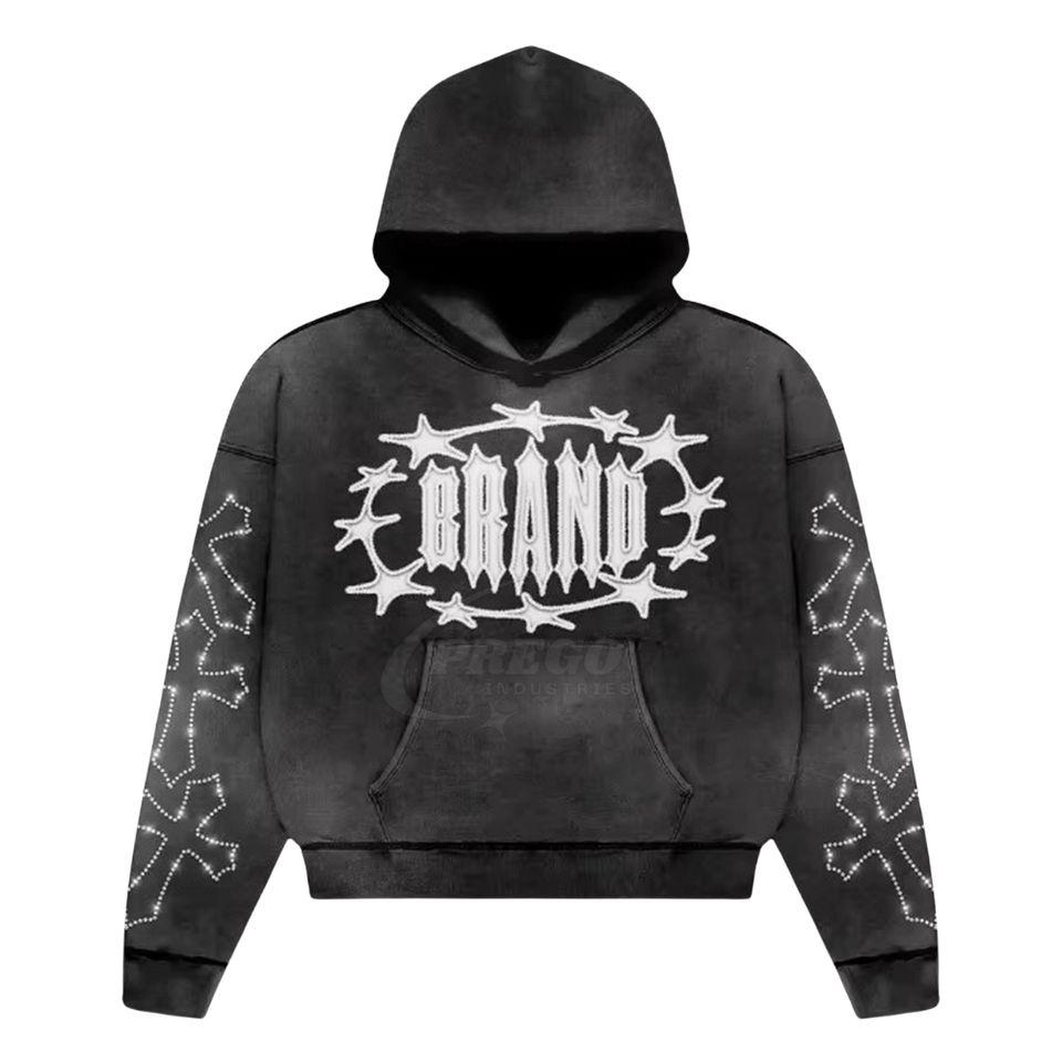 Hoodie unisexe coupe courte et ample en molleton 100% coton, avec patch appliqué personnalisé, impression numérique, effet délavé soleil et usé, pour homme