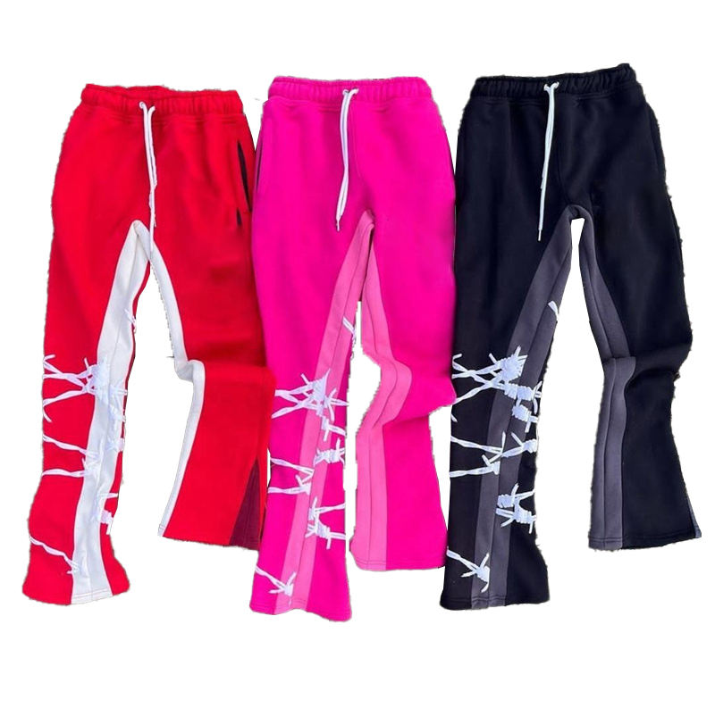 Survêtement évasé imprimé bouffant avec logo personnalisé en 3D pour hommes, survêtement à capuche avec fermeture éclair complète, ensemble pantalon de survêtement, grande taille
