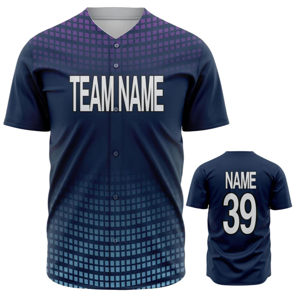 Maillot de baseball personnalisé bleu marine dégradé pour hommes, chemise de sport athlétique respirante à boutons pour équipes de softball et matchs