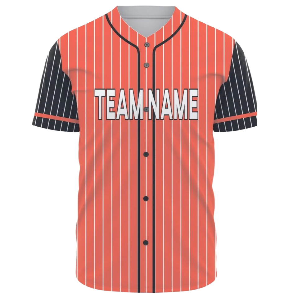 Maillot de baseball personnalisé pour hommes, à rayures fines orange, boutonné, respirant, uniforme d'équipe de softball, chemise de sport athlétique pour équipes