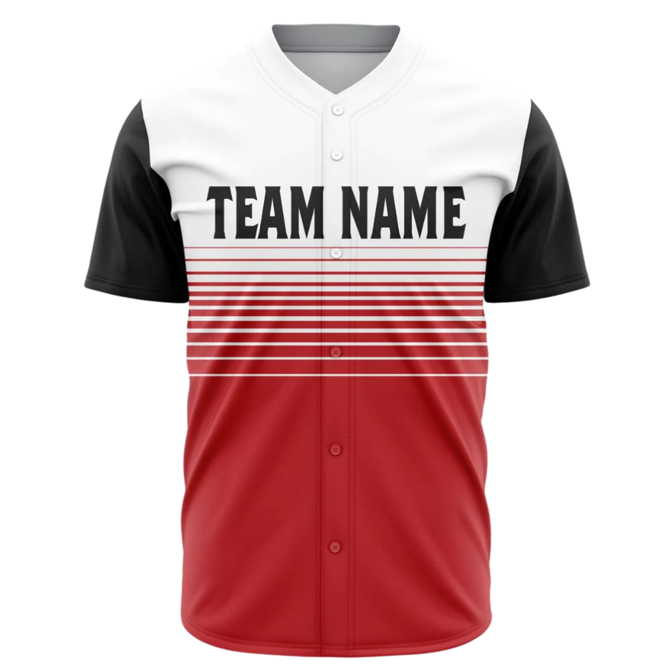 Maillot de baseball personnalisé pour hommes, blanc et rouge dégradé, à boutons, respirant, uniforme d'équipe de softball, chemise de sport athlétique pour les matchs