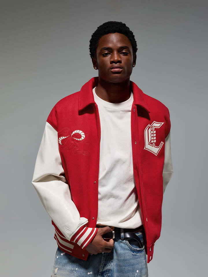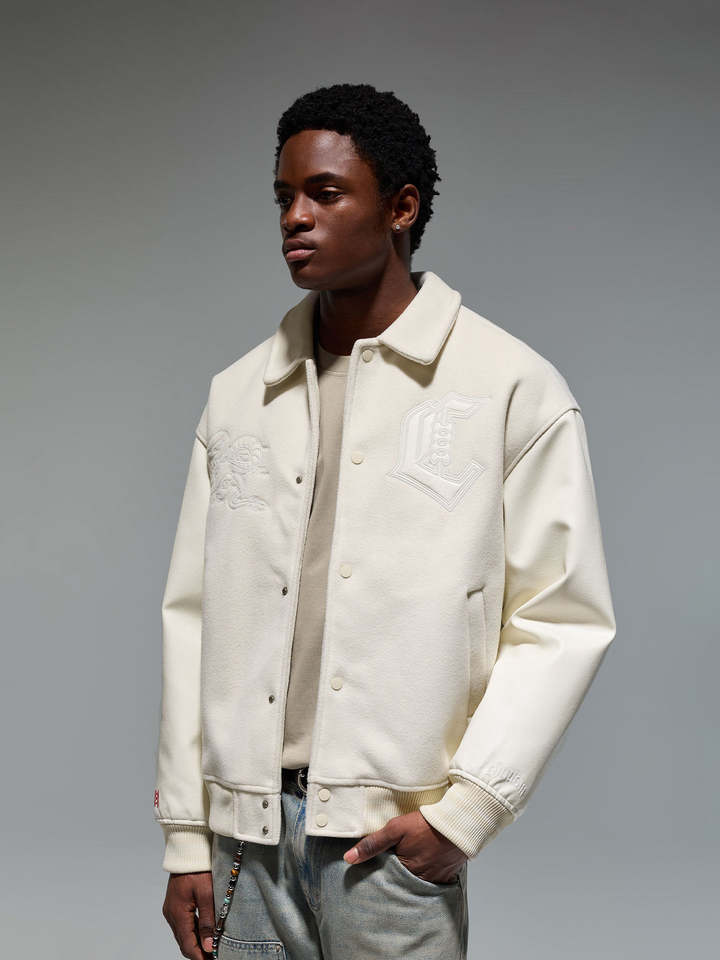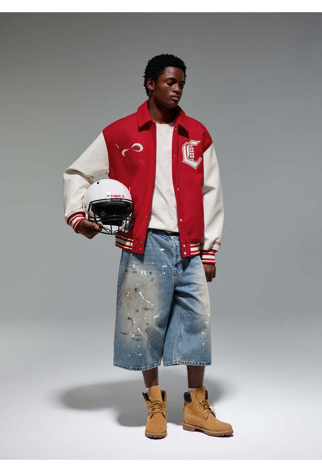 Blousons universitaires personnalisés pour hommes en mélange de laine, avec patchs brodés en chenille épais et appliques de baseball, col montant