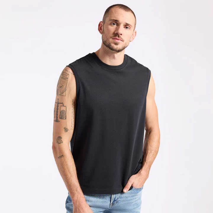 Men Custom Black Gym Tank Top 100% Cotton Knitted Weave Eco-Friendly Quick Dry Superior Comfort Breathability High Street Style
