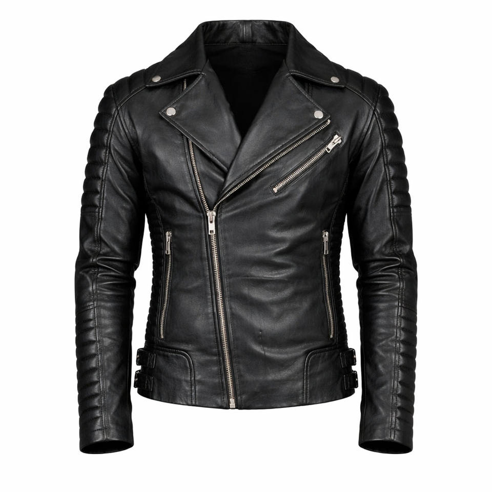 Manteau d'hiver pour homme en cuir de vachette matelassé, coupe ample, asymétrique, avec fermeture éclair, style motard, couleur personnalisable