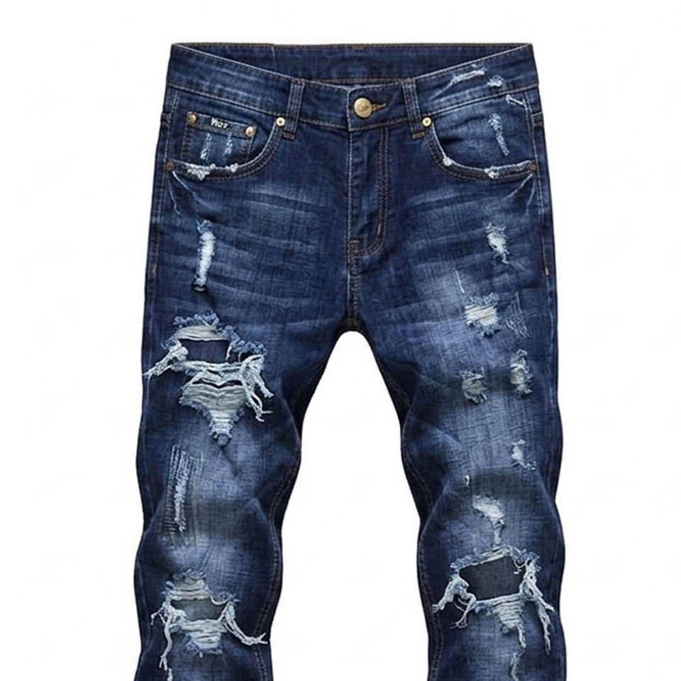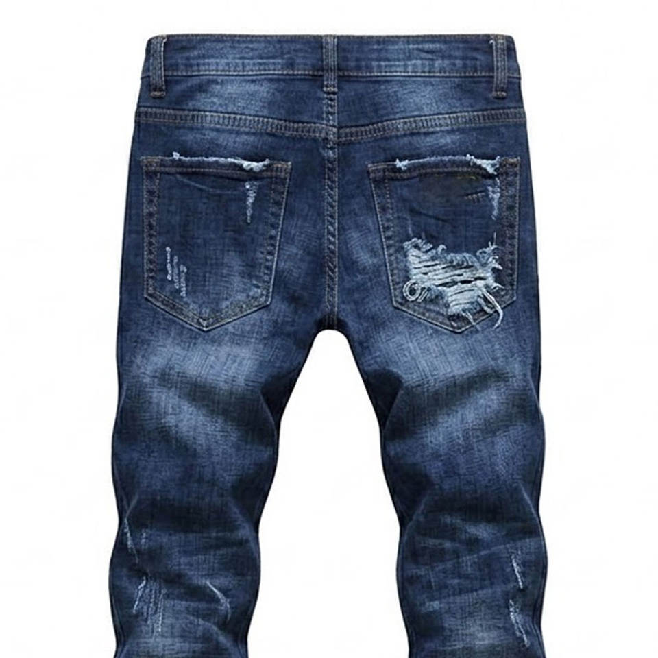 Jeans déchirés pour hommes, coupe slim, décontractés, tendance, bleu délavé, look moderne