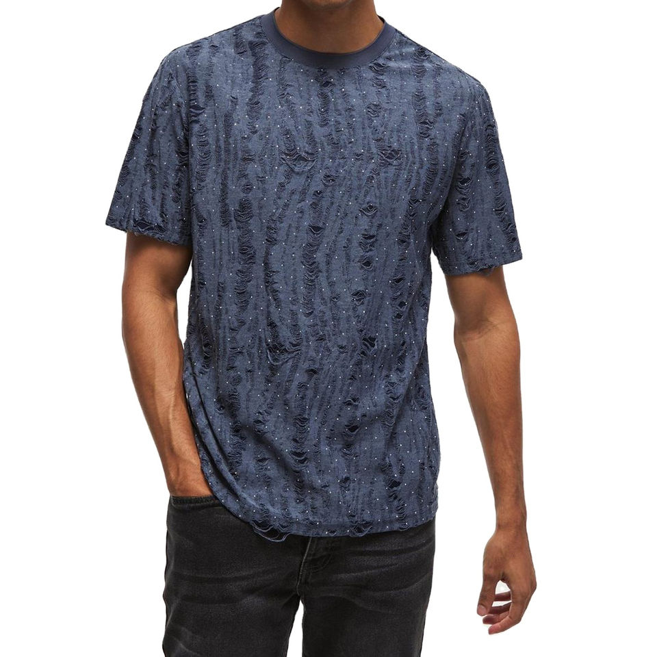 T-shirt déchiré et vieilli pour homme, en coton lavé, style streetwear décontracté, manches courtes, coupe oversize, tendance, OEM