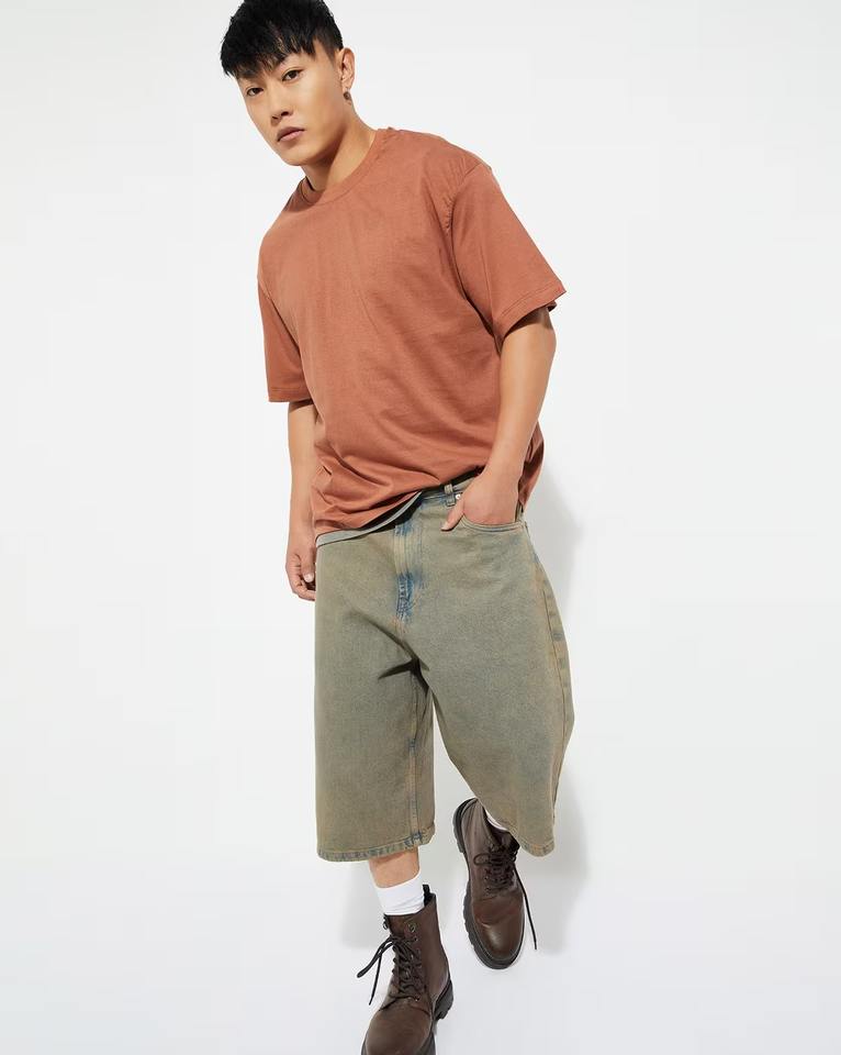 T-shirt ample à épaules tombantes pour homme, en coton, à manches courtes, décontracté, avec motif graphique et fentes latérales, style streetwear