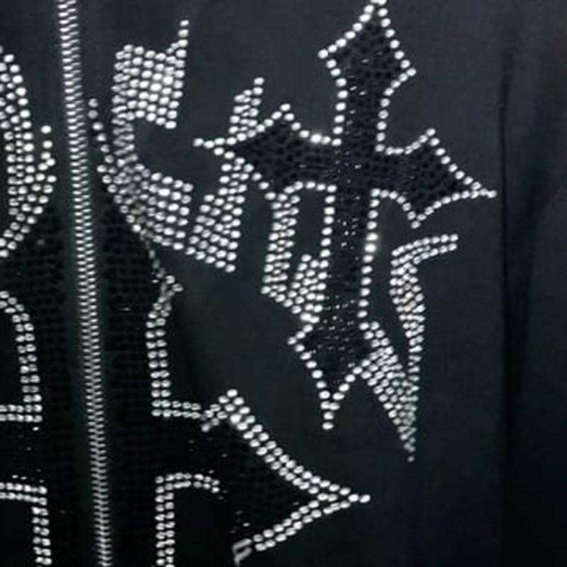 Sweat à capuche tendance pour hommes avec strass, lettres graphiques, sweat à capuche zippé, sweat gothique à manches longues, haut surdimensionné 2025
