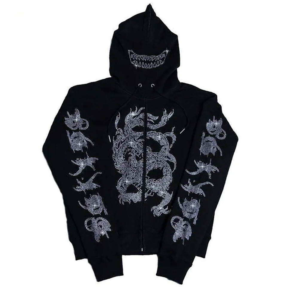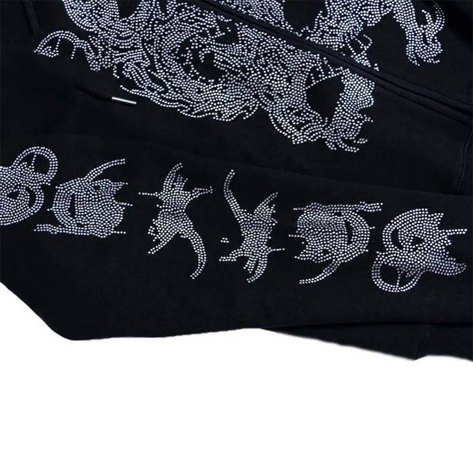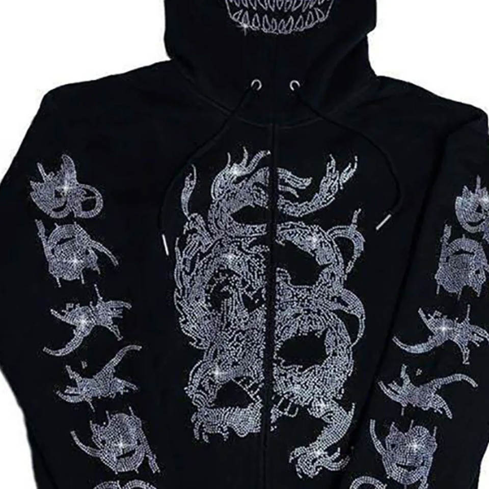 Sweat à capuche tendance pour hommes avec strass Pull en polaire à manches longues pour vêtements de rue