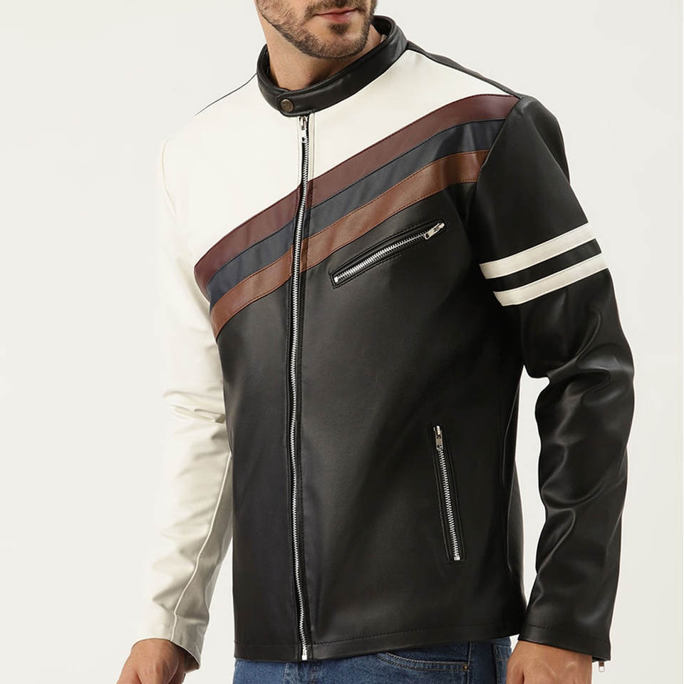 Men Multi Color Single Shade Leather Jacket