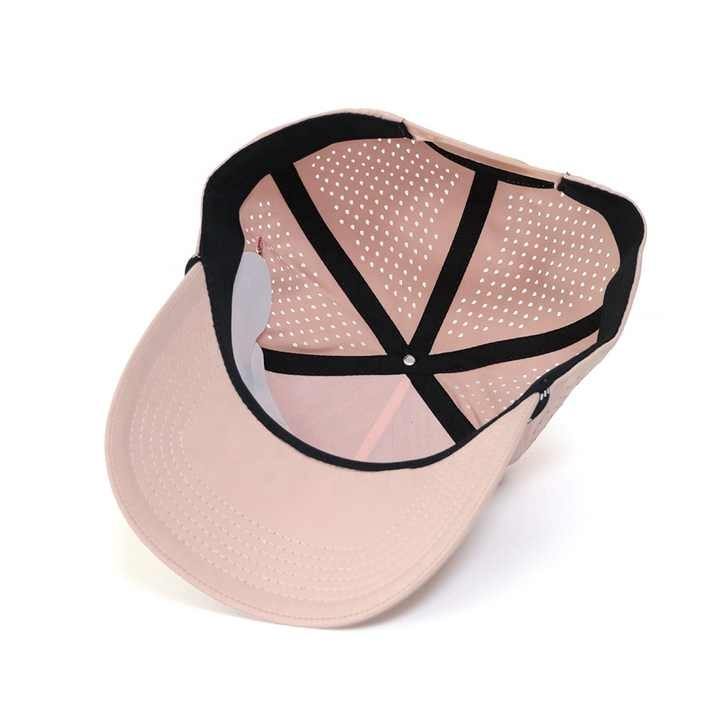 Casquettes de golf et de baseball unisexes à 5 panneaux, visière légèrement incurvée, avec cordon, imperméables, pour le sport, avec logo en silicone brodé personnalisé