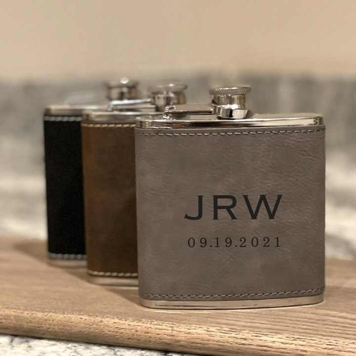 Bouteille de Whisky étanche Portable pour homme, cadeau, personnalisé, Logo gravé, imperméable, similicuir, flacon de hanche en acier inoxydable